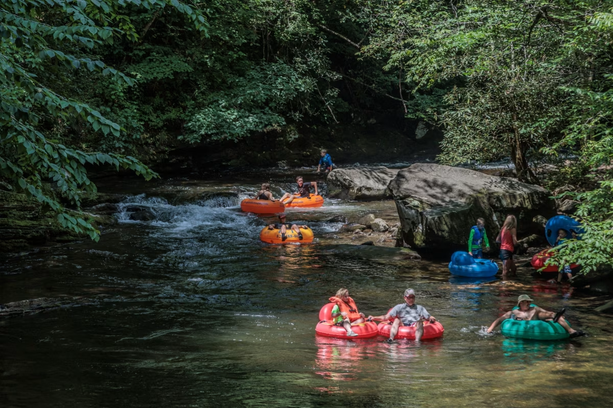 人们在北卡罗来纳州斯莫基山脉的深溪漂流。超经济型度假装备日益兴旺,一位运营商表示:“人们渴望户外体验,但仍然注重价格。” © Ron Buskirk/UCG/UIG/Getty Images